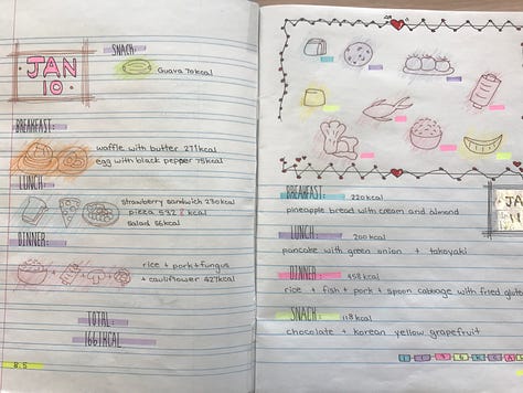 Written entries in the Healthy Start Journal on their digital portfolio