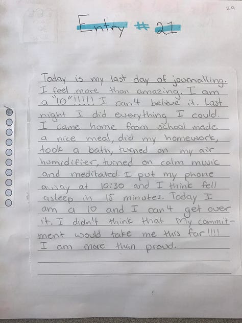 Students work toward their goal for 21 days, journaling three times per week (or more if needed) in class. Journaling is flexible and can take many forms: